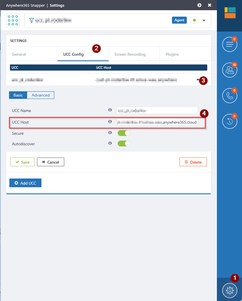 This shows information about all active UCC calls (in queue, in IVR Interactive Voice Response, or IVR, is a telephone application to take orders via telephone keypad or voice through a computer. By choosing menu options the caller receives information, without the intervention of a human operator, or will be forwarded to the appropriate Agent., connected with agent, etc)