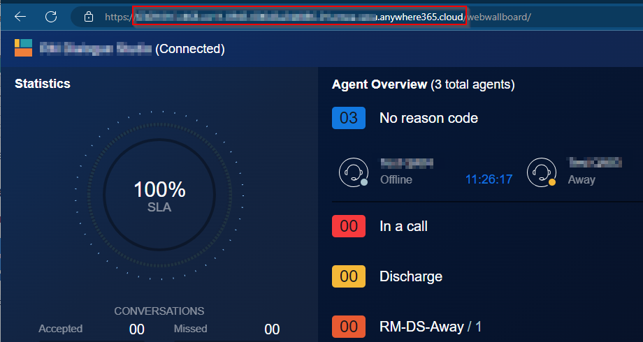 Replace <GUID GUID stands for Globally Unique Identifier (format is always like 2ed153b4-f632-4766-b846-5b2a769b36d1) and is a pseudo random number used in software applications that is assumed to be unique. The total number of unique keys (2<sup>128</sup> of 3.4028×10<sup>38</sup>) is very large and the probability of the creating the same GUID twice is very small, though not 100% guaranteed. The term GUID is generally used by developers working with Microsoft technologies, while UUID is used everywhere else.> with the "AnywhereNow Tenant ID" provided by your AnywhereNow contact (can be retrieved from OnePortal Formerly known as Partner Portal. A redesigned web portal for managing Dialogue Cloud deployments.).