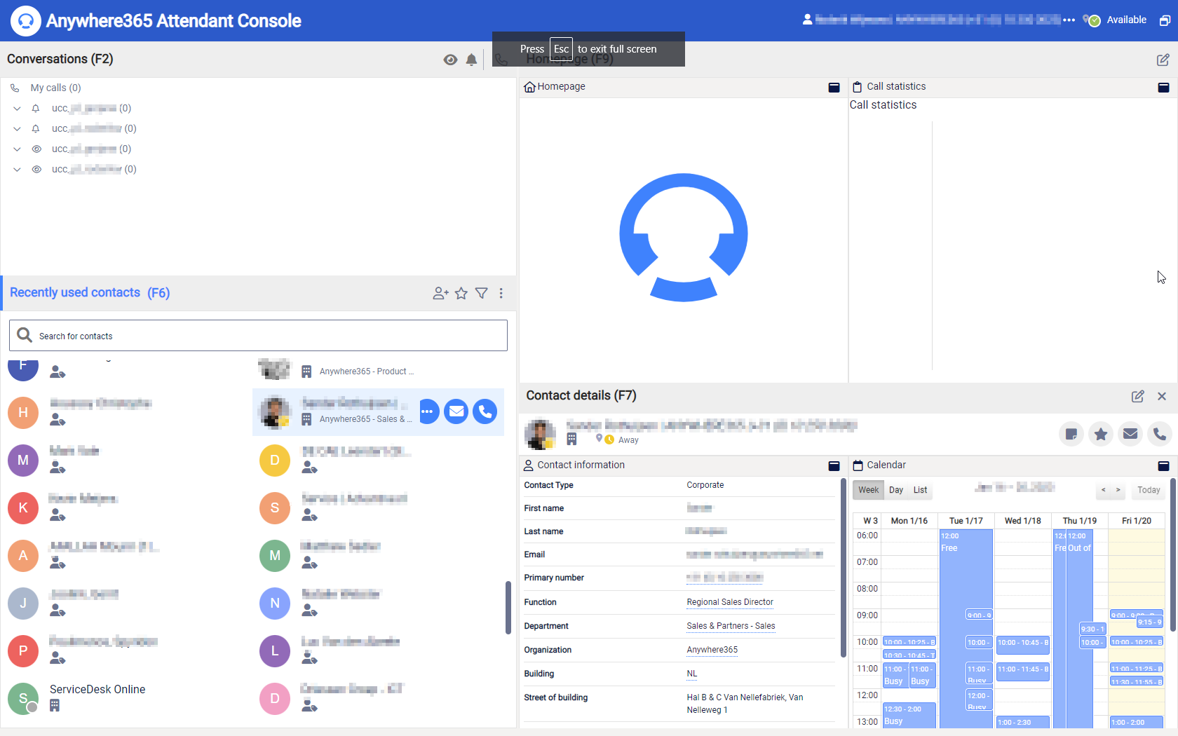 The added benefit of using Attendant Console for Dialogue Cloud is that it's a supplemental solution on top of an AnywhereNow Cloud UCC A Unified Contact Center, or UCC, is a queue of interactions (voice, email, IM, etc.) that are handled by Agents. Each UCC has its own settings, IVR menus and Agents. Agents can belong to one or several UCCs and can have multiple skills (competencies). A UCC can be visualized as a contact center “micro service”. Customers can utilize one UCC (e.g. a global helpdesk), a few UCC’s (e.g. for each department or regional office) or hundreds of UCC’s (e.g. for each bed at a hospital). They are interconnected and can all be managed from one central location.. And hence benefits from it's rich features, such as enhanced call routing, call recording, real-time translation, IVR Interactive Voice Response, or IVR, is a telephone application to take orders via telephone keypad or voice through a computer. By choosing menu options the caller receives information, without the intervention of a human operator, or will be forwarded to the appropriate Agent., supervisor, reporting, wallboards and many more.