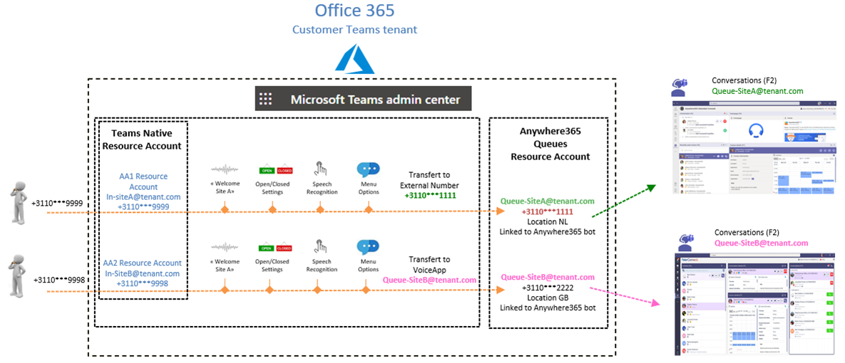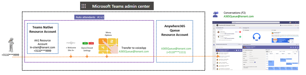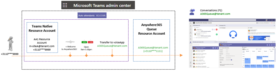 Using Teams AutoAttendant upfront may require change/anonymizing the number presented when dialing out from the Attendant Console.