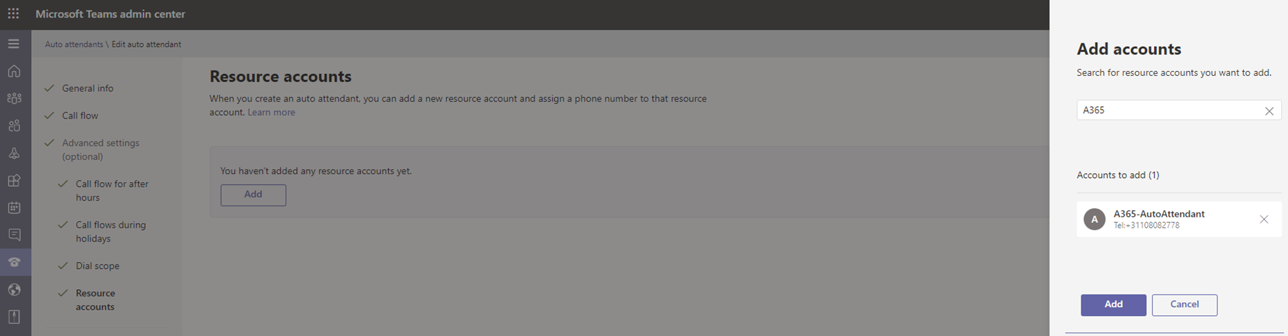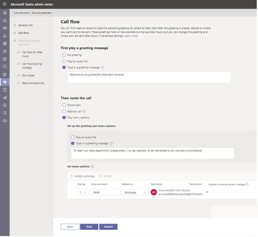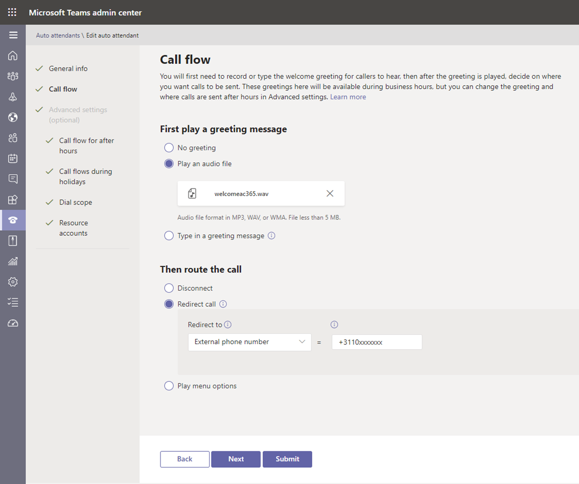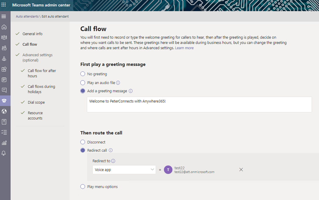 Configure Teams Auto Attendant using Teams Admin Center