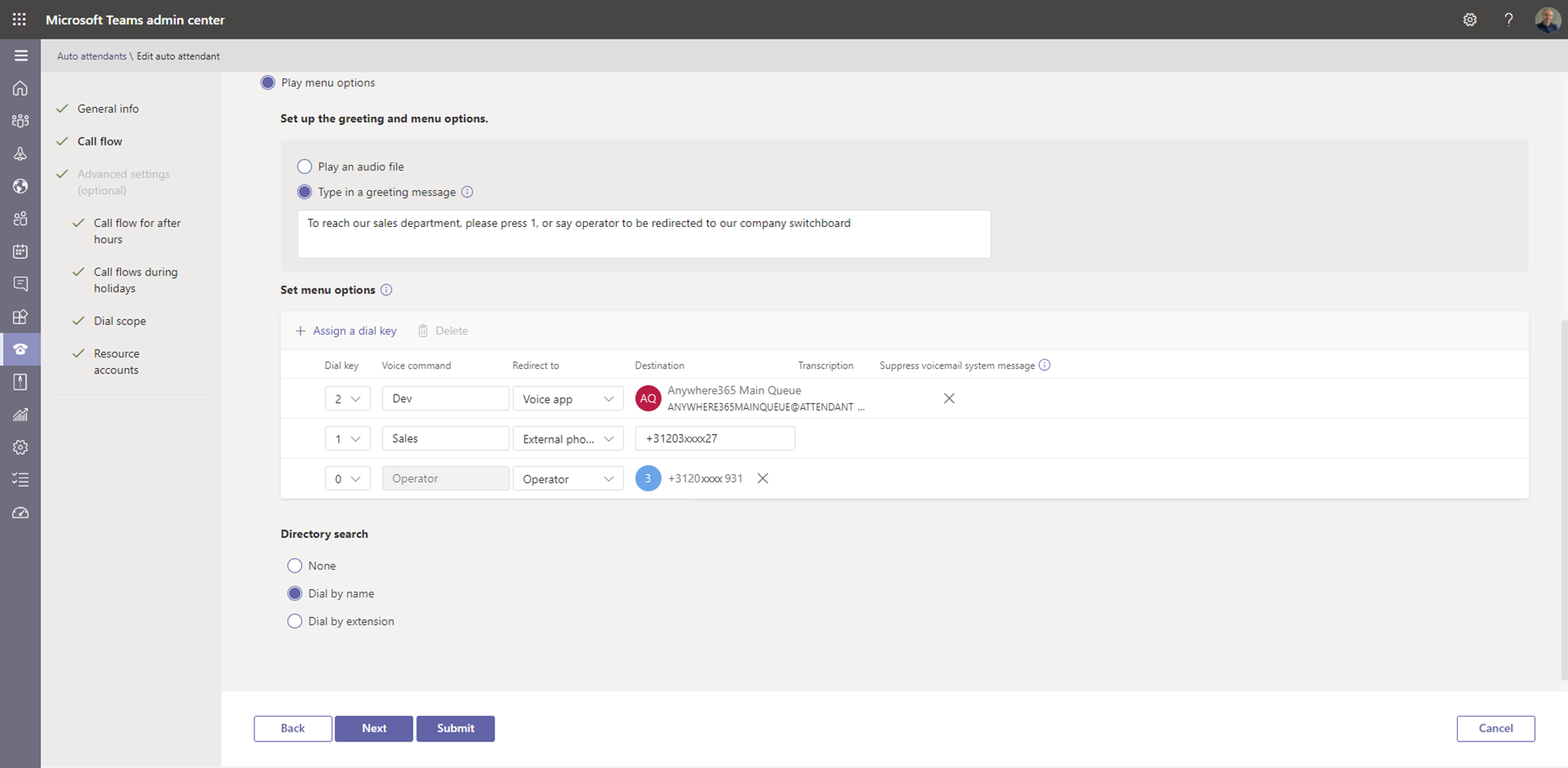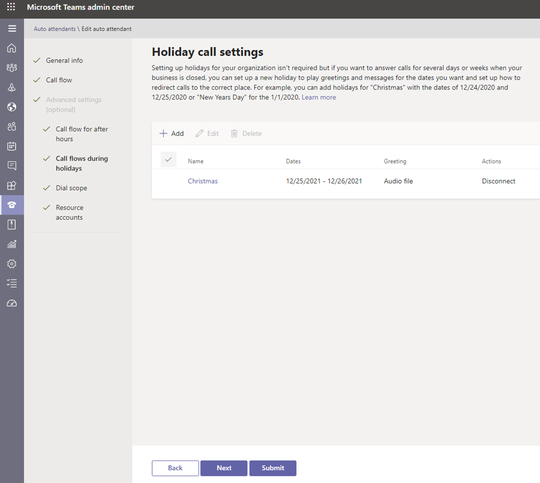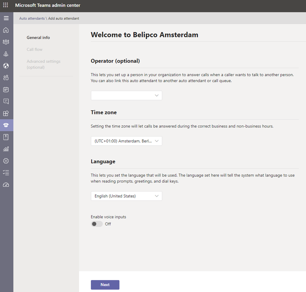 Configure Teams Auto Attendant using Teams Admin Center