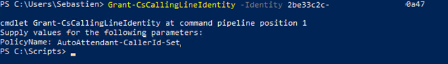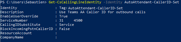 Existing Teams Auto Attendant (A365 in the example) | Get-CsAutoAttendant | Identity |