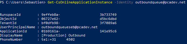 AnywhereNow Attendant Queue (A365queue in the example) | Get-CSonlineApplicationInstance | fl | ObjectId |