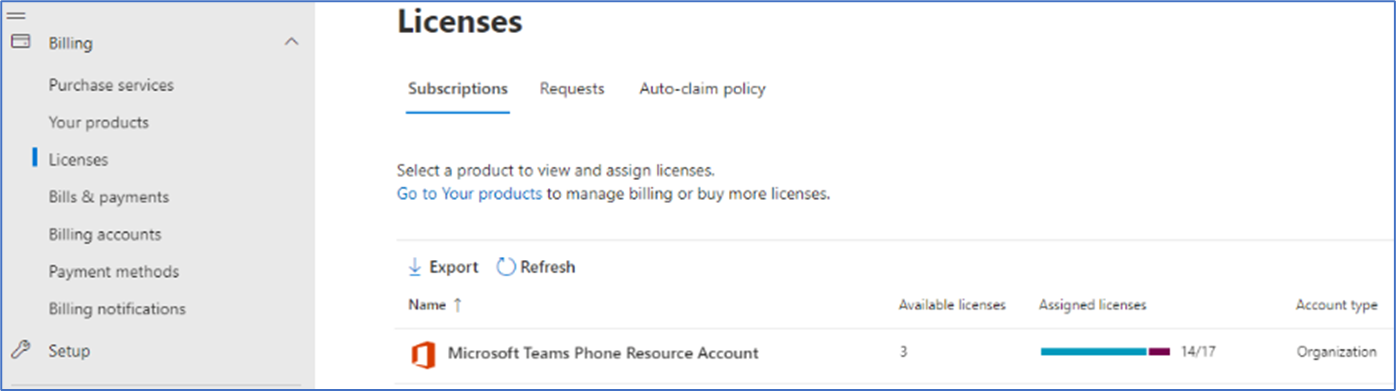 To assign a license to the Resource Account, use Microsoft 365 admin center.