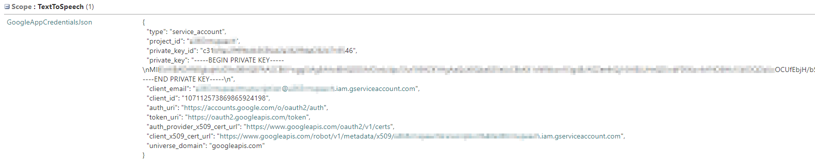 | GoogleAppCredentialsJson | TextToSpeech |
