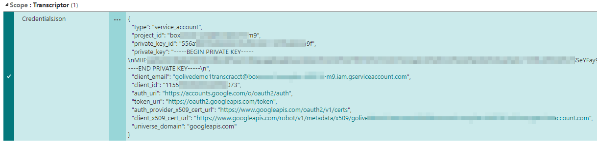 The plain text JSON of the credential. Do not enter the path to the file, but the content of the file.