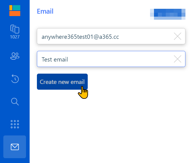 Once both fields are filled in, the ‘Create new email’ button becomes available. Click it.