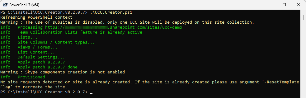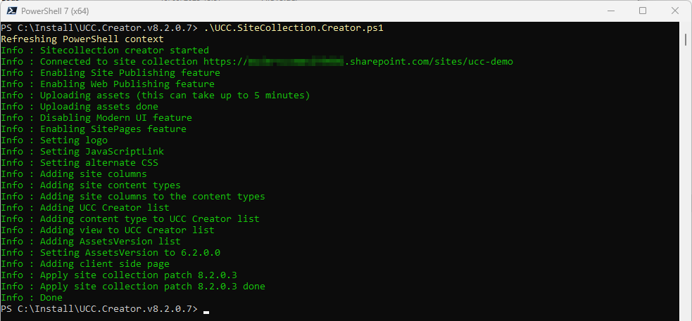 Step 2: Run Ucc.SiteCollection.Creator.ps1 script in PowerShell