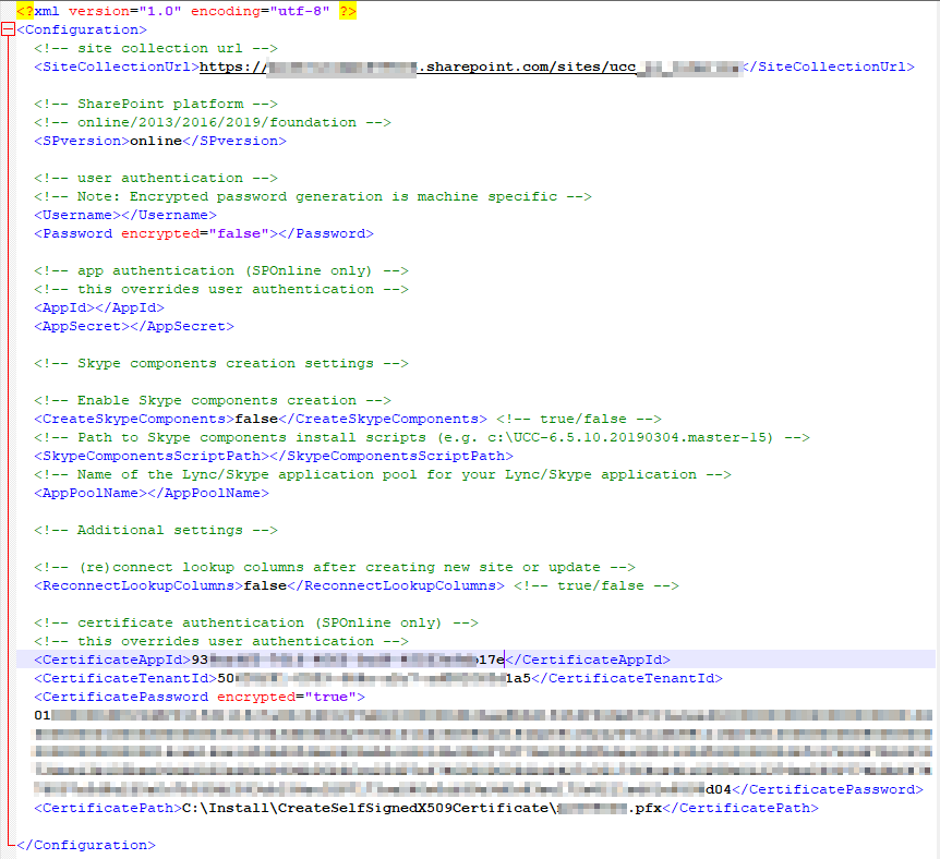 - CertificatePassword (if encrypted="true", please encrypt with the encryptpassword.ps1 script in the Ucc.Creator package)