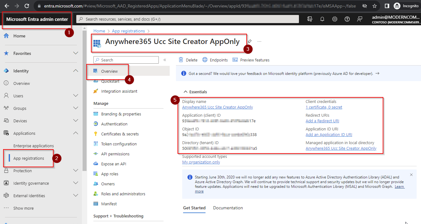 Update the App Registration in your Microsoft Entra admin center, visit - https://entra.microsoft.com/