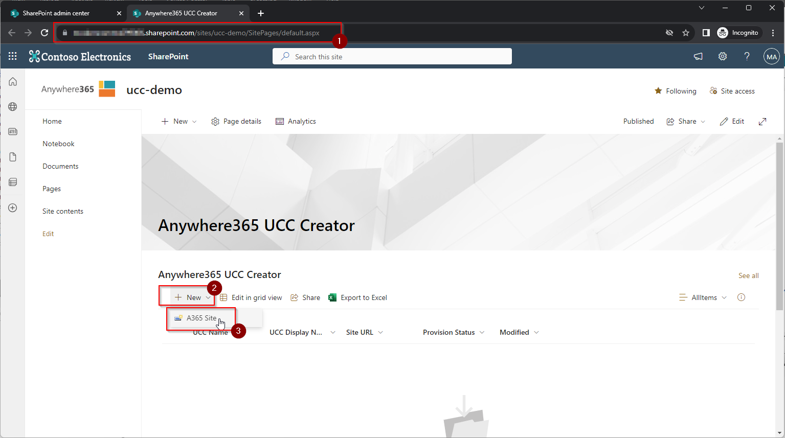 Step 3: Create a SharePoint site (formerly known as site collection) for a UCC