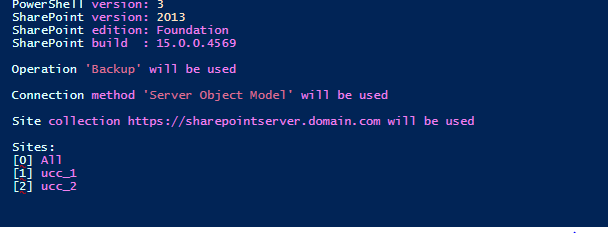 When you run the script next time and the feature is enabled, you will be able to change the name (site URL) from all selected backup UCCs (prefixold) to be restored with a new prefix (prefixnew).