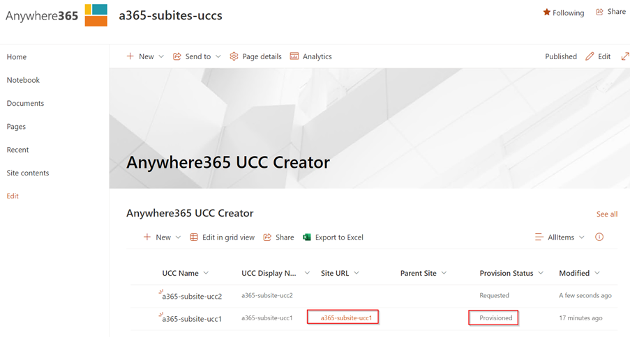 AnywhereNow SharePoint UCC Site Creator