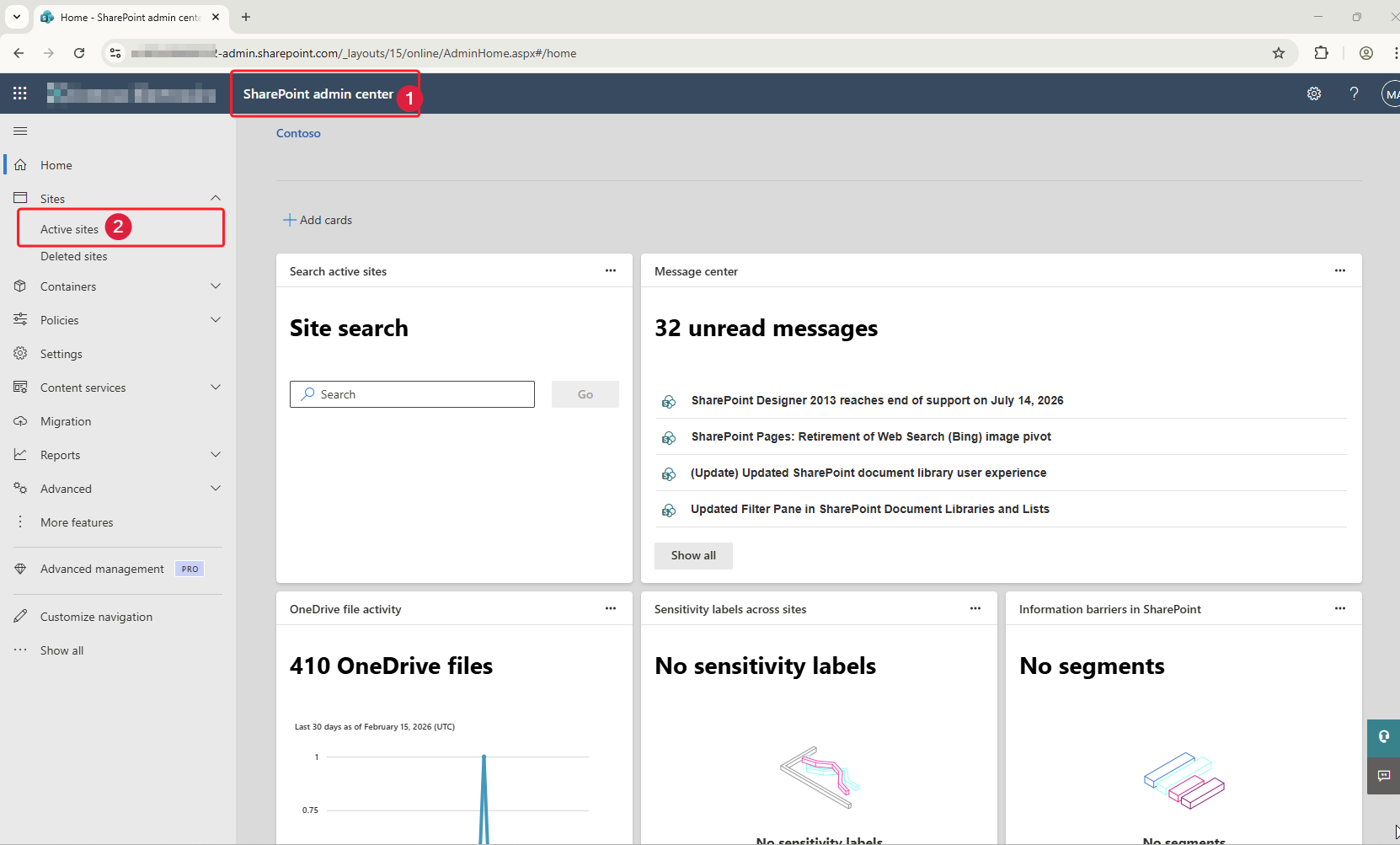Info : Connecting to tenant admin: https://contoso-admin.sharepoint.com