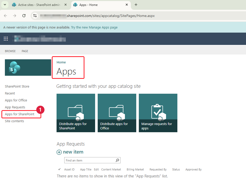 Info : Tenant App Catalog: https://contoso.sharepoint.com/sites/appcatalog