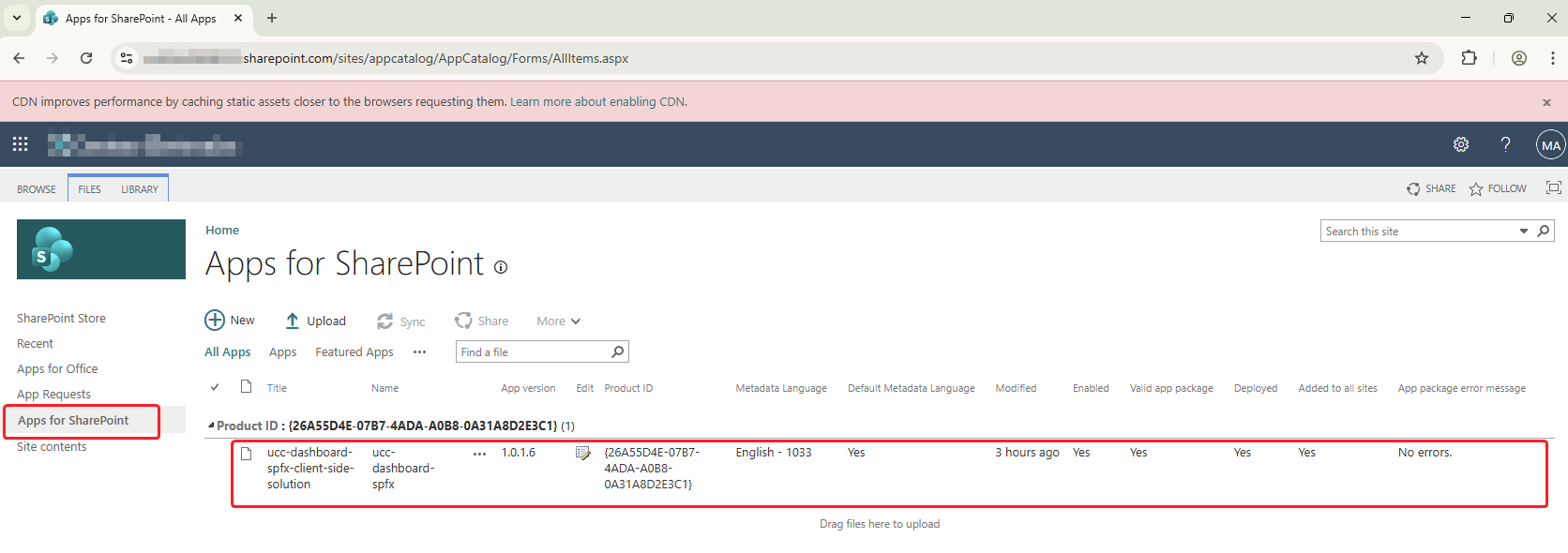 Info : Found SPFx package: ...\SPFx\sharepoint\solution\ucc-dashboard-spfx.sppkg