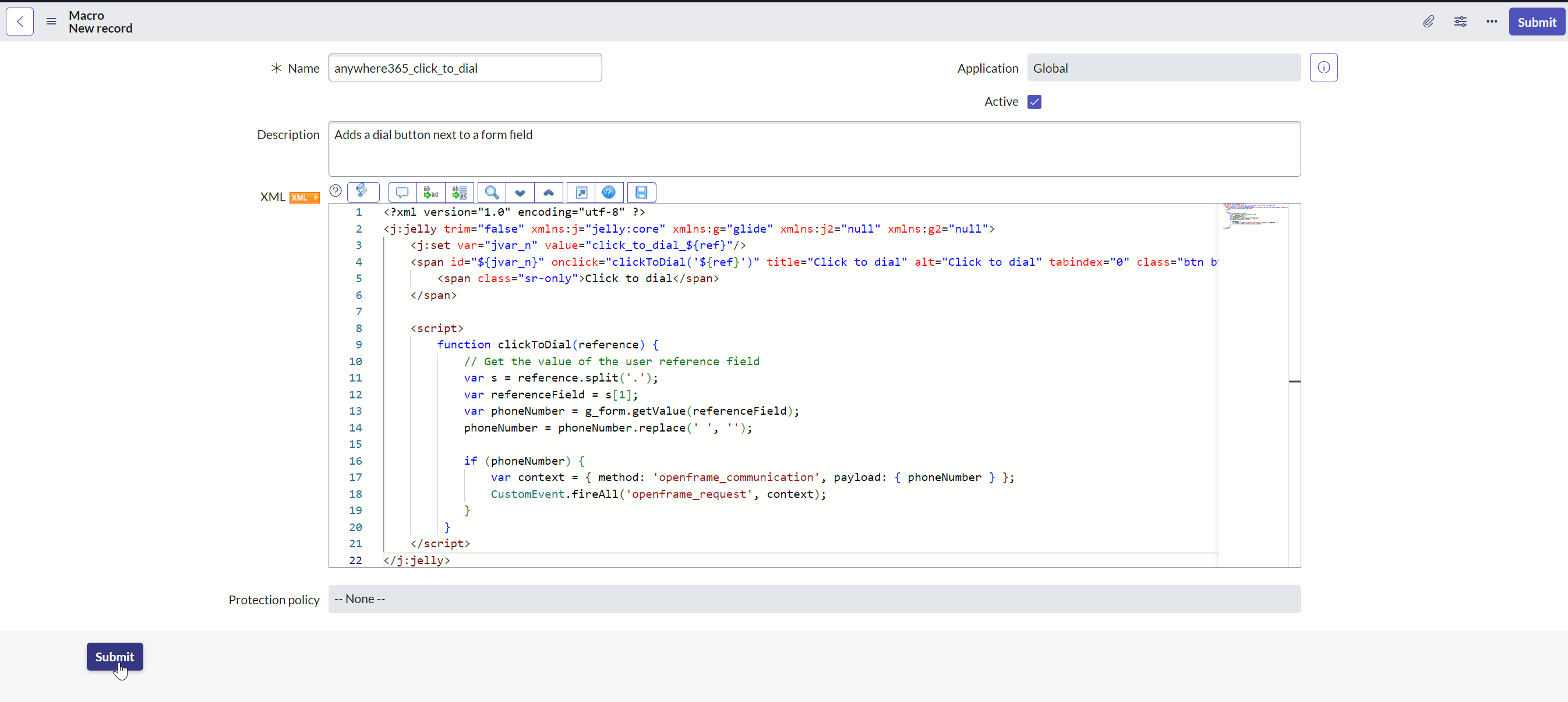 Description: Adds a dial button next to a form field