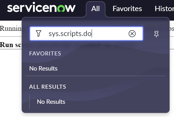 Type in the following in the ServiceNow Filter navigator: sys.scripts.do and click Enter.