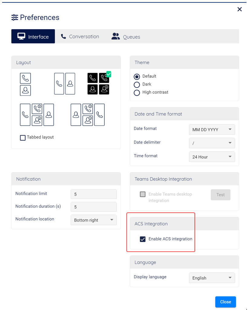 Flexible Options: Post-setup, Although Microsoft is forcing all customers to use the New Teams client, customers still using the Classic Teams client have the liberty to choose between ACS and the Desktop Integrator via the preferences settings. We are planning to phase out the Desktop Integrator in forthcoming updates.