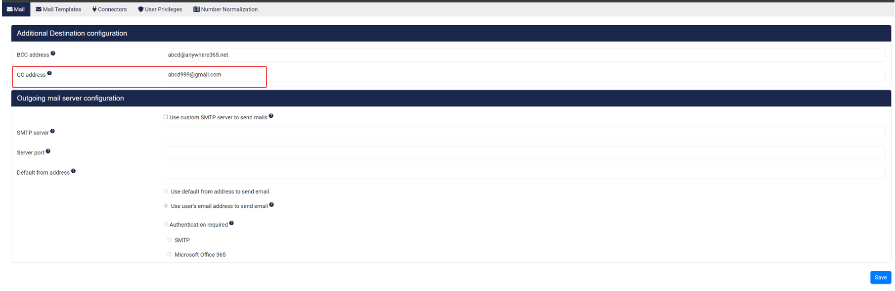 In addition to the existing blind copy (Bcc) feature in the email settings, users now have the capability to designate additional recipients for email copies directly through the Admin Portal’s mail configuration. This enhancement allows for a more versatile distribution of correspondence.