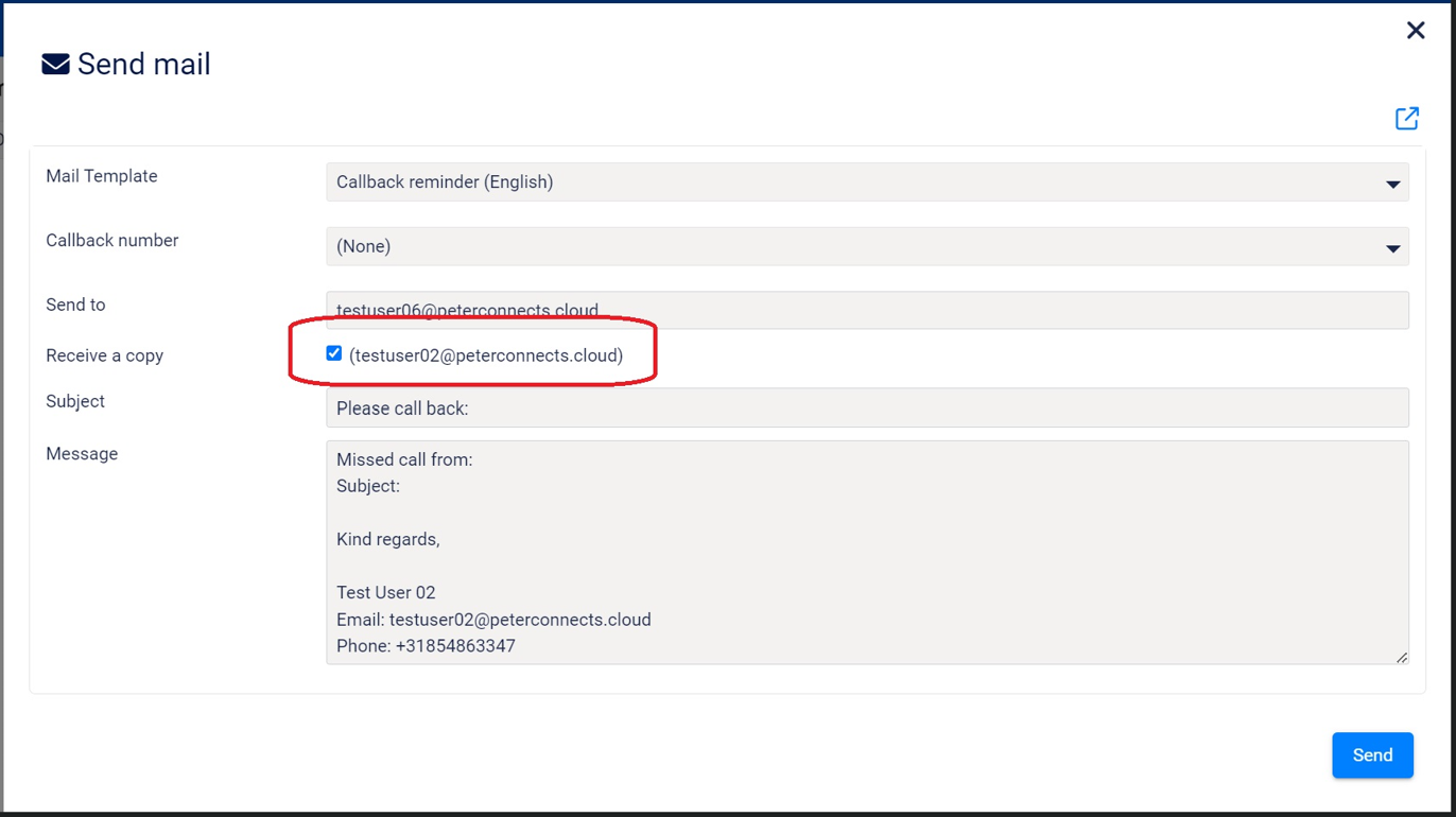 The callback CallBack, an IVR menu feature for voice, enables the customer to confirm or leave an alternative phone number to be called back by an available agent during business hours. email notification system now includes a convenient option for operators. When crafting a callback notification, operators have the choice to receive a duplicate of the email. This feature has been frequently requested and serves as a reminder for operators by keeping a record of critical communications.